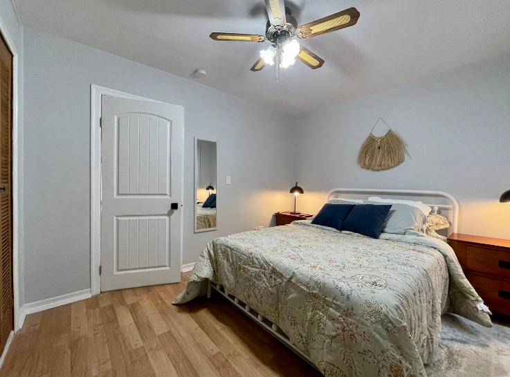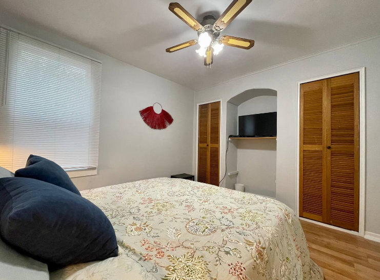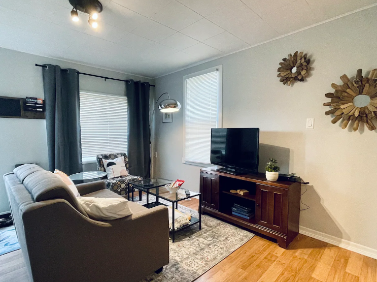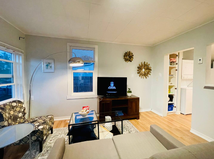 This little bungalow offers two bedrooms (one with a queen bed, one with a twin), a bathroom, living area and small work/dining area. While the house is quaint, the yard is HUGE and fenced for your furry friends. The home includes free on-street parking, all basic amenities and supplies needed to cook a meal and have a good night’s rest!